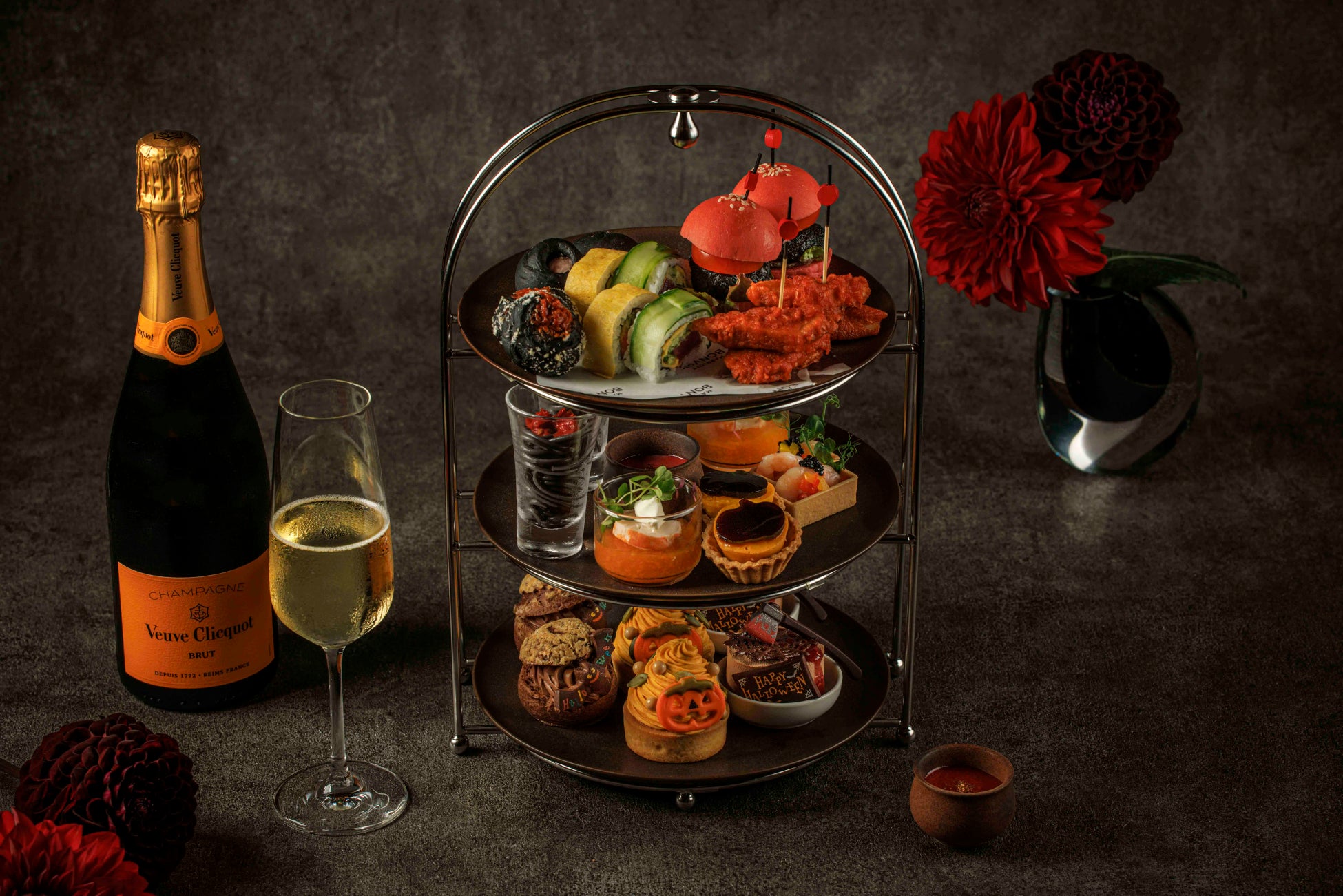 「Halloween Night “Gothic & Elegance”」では、「ヴーヴ・クリコ イエローラベル ブリュット」のフリーフローに加え、総料理長による本イベント限定のスペシャルフードをご用意。さらに、幻想的なスティルタンゴのパフォーマンスやヴァイオリン&ピアノの生演奏など、アクティビティーがイベントを盛り上げます。