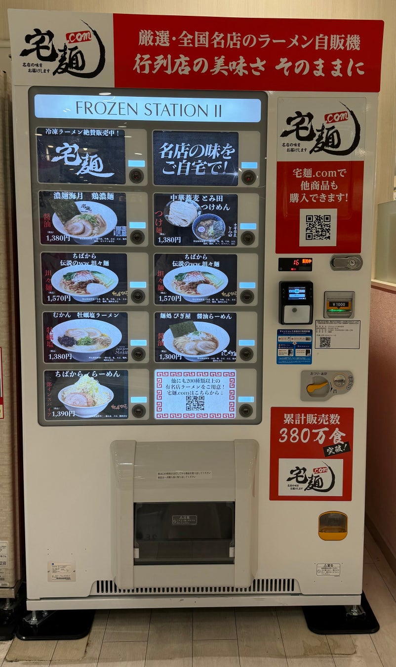 国内最大級のラーメン専門通販サイト「宅麺.com」を運営するグルメエックス株式会社(本社:東京都港区、代表取締役社長:冨澤 文秀)は、大宮マルイ(埼玉県さいたま市)の2Fイベントスペースに、「宅麺」プレミアム冷凍ラーメンの自動販売機を設置したことをお知らせします。「宅麺」をマルイの店舗で販売するのはこれが初めてです。 大宮マルイは1日平均約24万人が乗車する (※)巨大ターミナル・大宮駅に隣接した商業施設であり、宅麺の自販機で行列店のプレミアムラーメンを、より多くの人に、配送料無料で楽しんでいただきたいと考えています。
