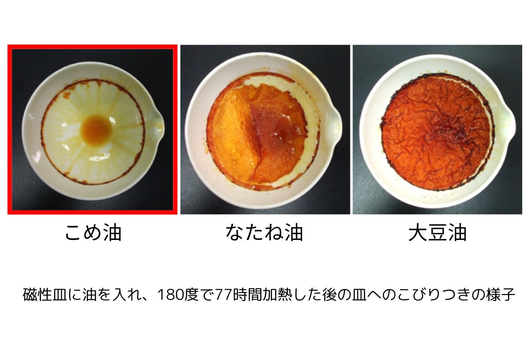 一般的に油が傷んでくるとドロッとして泡が多くなりますが、こめ油は泡立ちが少なく長持ちします。