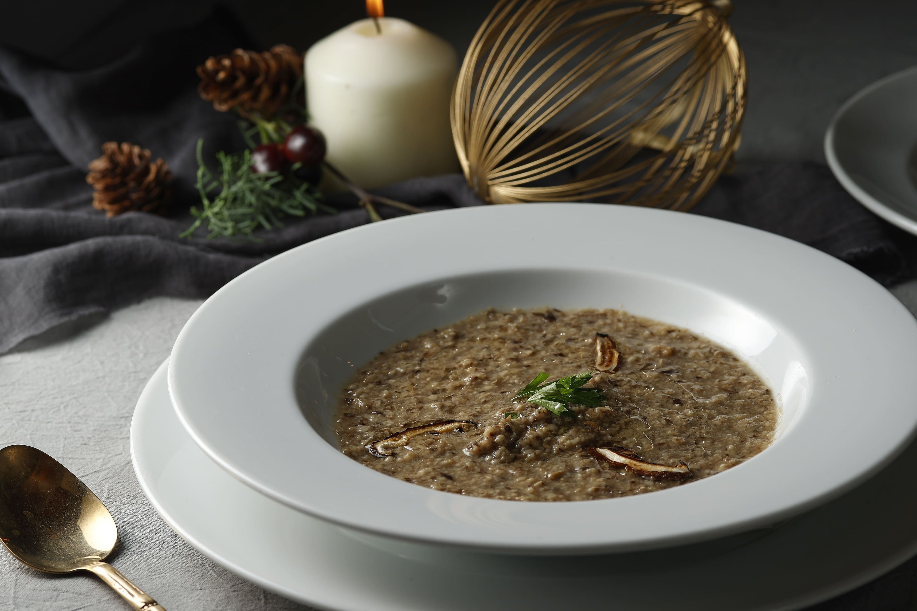 芳醇なトリュフの香りと、食感豊かなキノコを贅沢に使った一品。スープでありながら、しっかりとした満足感が得られます。濃厚な風味とキノコの旨味が口の中に広がり、心まで温まるひと皿です。