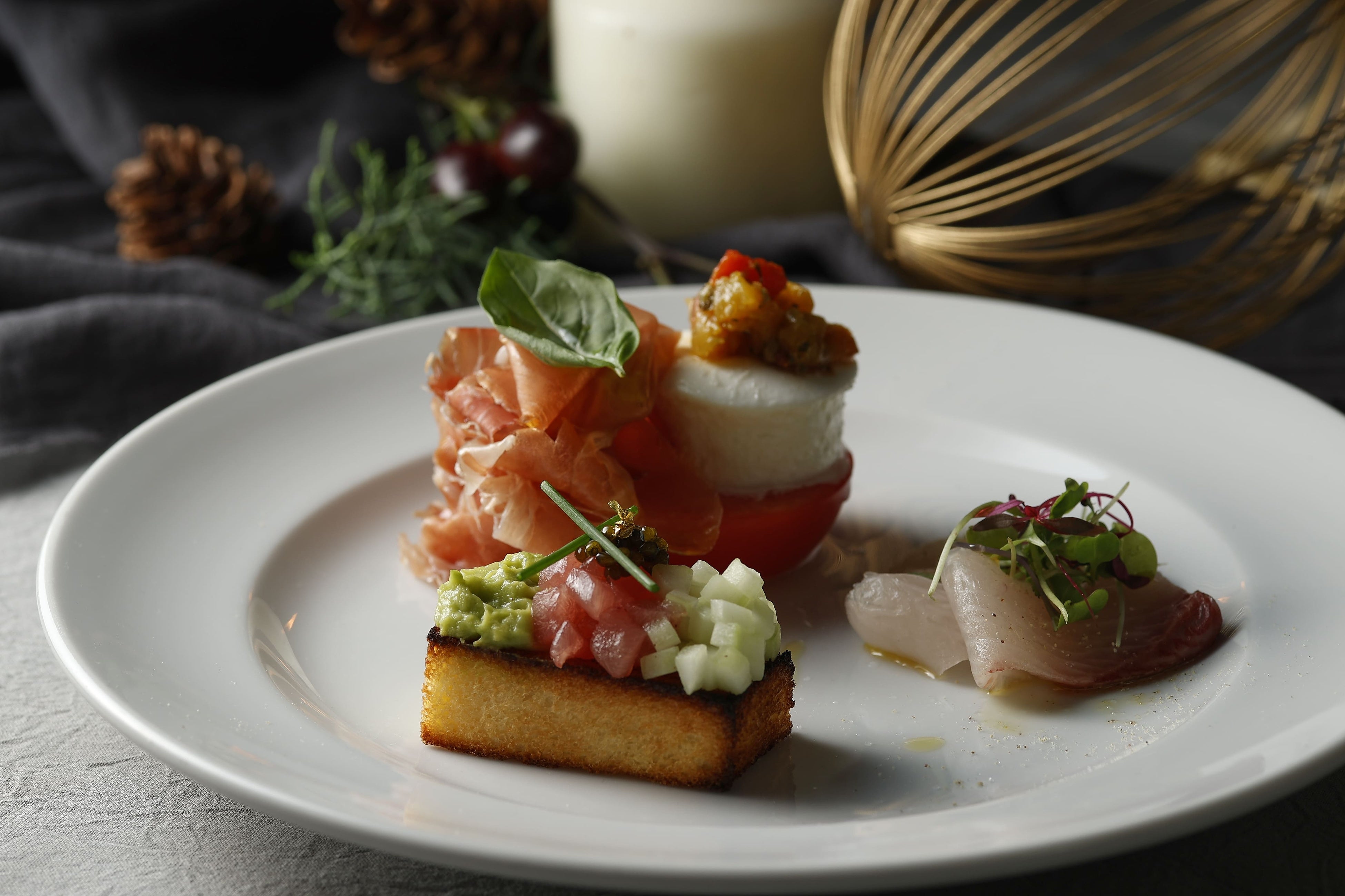 マグロのタルタルキャビア添え、カンパチのカルパッチョ、定番メニューでも人気のアメーラトマトを使用したクリーミーなカプレーゼをお楽しみいただけます。