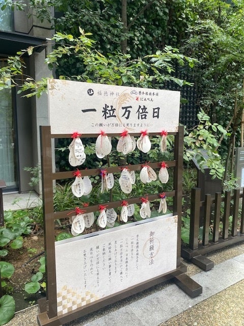 「一粒万倍弁当」をご購入した際に差し上げる一粒万倍絵馬を福徳神社にお持ちいただき願い事を書いて専用絵馬掛けに吊るしてください。後日心を込めてお焚き上げいたします。