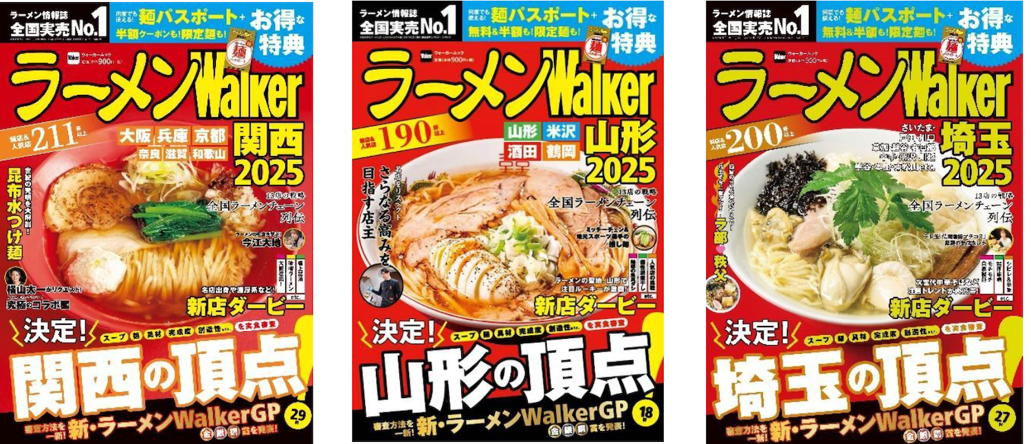 おかげさまで全国実売No.1!※ ラーメン情報誌『ラーメンWalker』は16年目を迎える今年、各エリアの本当に旨いラーメン店を決める人気企画「ラーメンWalkerグランプリ」を大幅リニューアル。審査方法を一新し、各エリアを代表するラーメン店を〈金賞〉〈銀賞〉〈銅賞〉の3つの賞で表彰します。