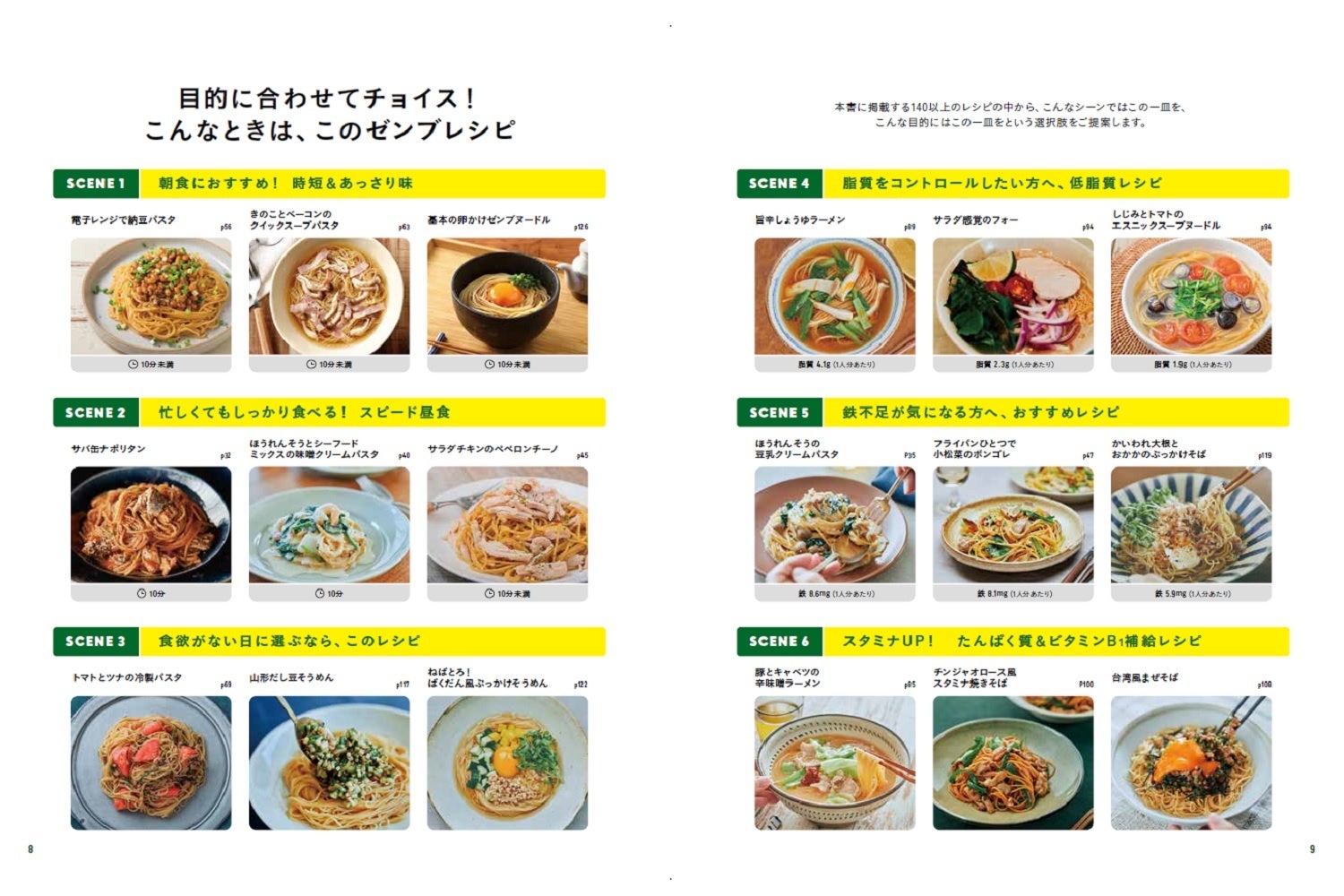 黄えんどう豆100%の「ZENBヌードル」は、おいしく食べて健康になりたい人やグルテンフリーを手軽に始めたい人を中心に人気を集め、累計販売食数1,500万食を突破。このたび、「ZENBヌードル」を手軽においしく楽しんでもらうために、発売から4年間に公式サイトやインスタグラムで紹介してきた600以上のレシピから約140を厳選し、書籍にまとめて発売する運びになりました。
