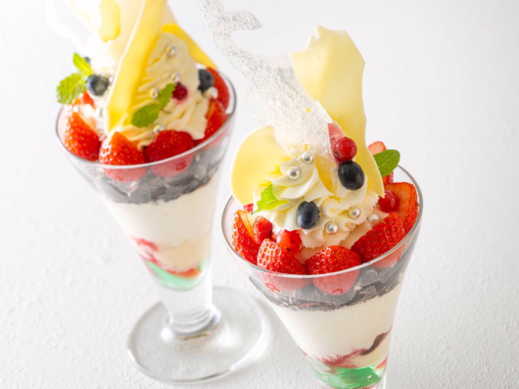 フェスティブシーズンを彩る華やかなコース料理、パフェやカクテルまで多彩に展開