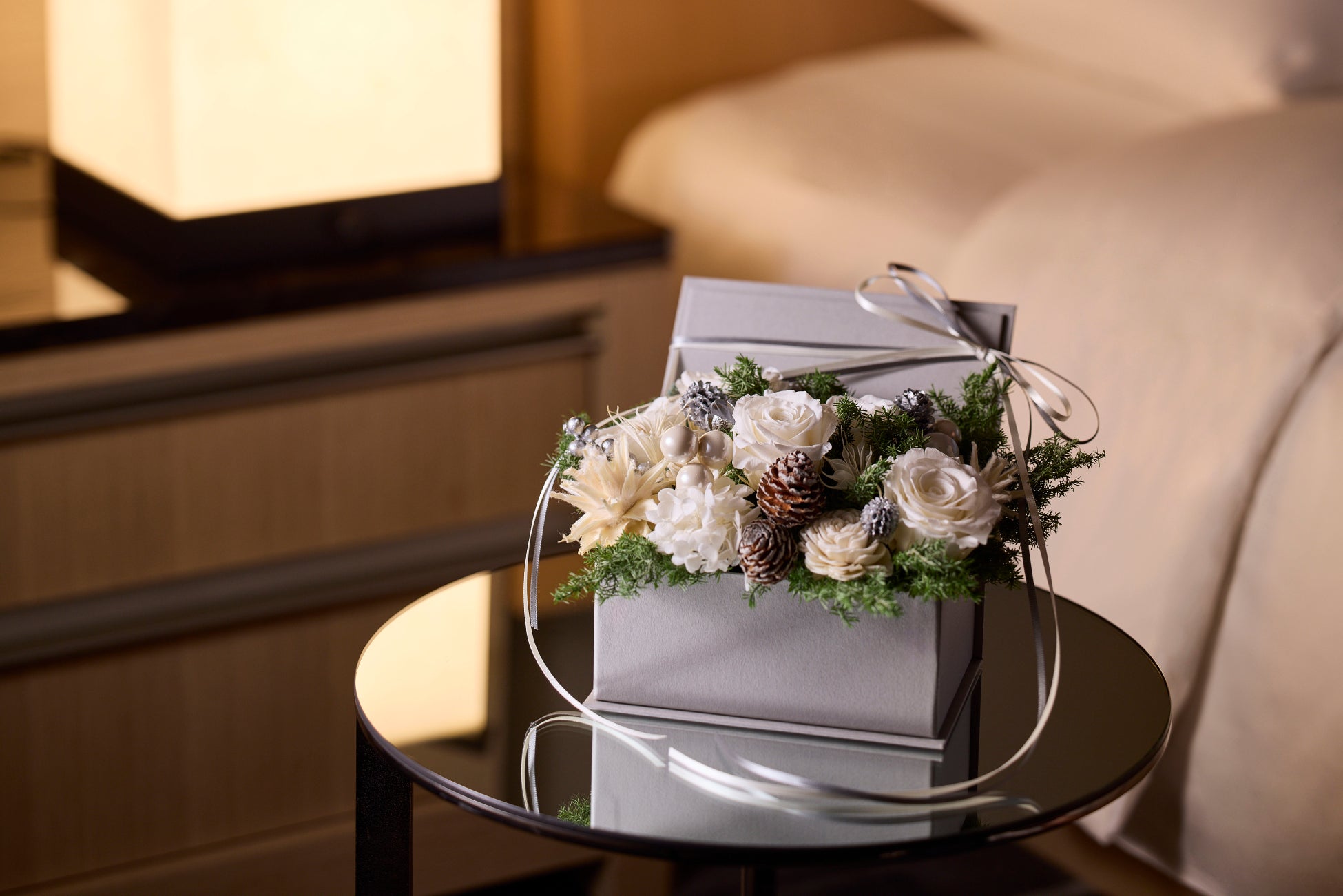 都会の喧騒を忘れる、洗練された和モダンの優雅な空間で、大切な人と過ごすおだやかなクリスマスタイムをご提案。ミルキーホワイト&シルバーをテーマカラーとしたフラワーボックスが大人のクリスマスを華やかに演出します。