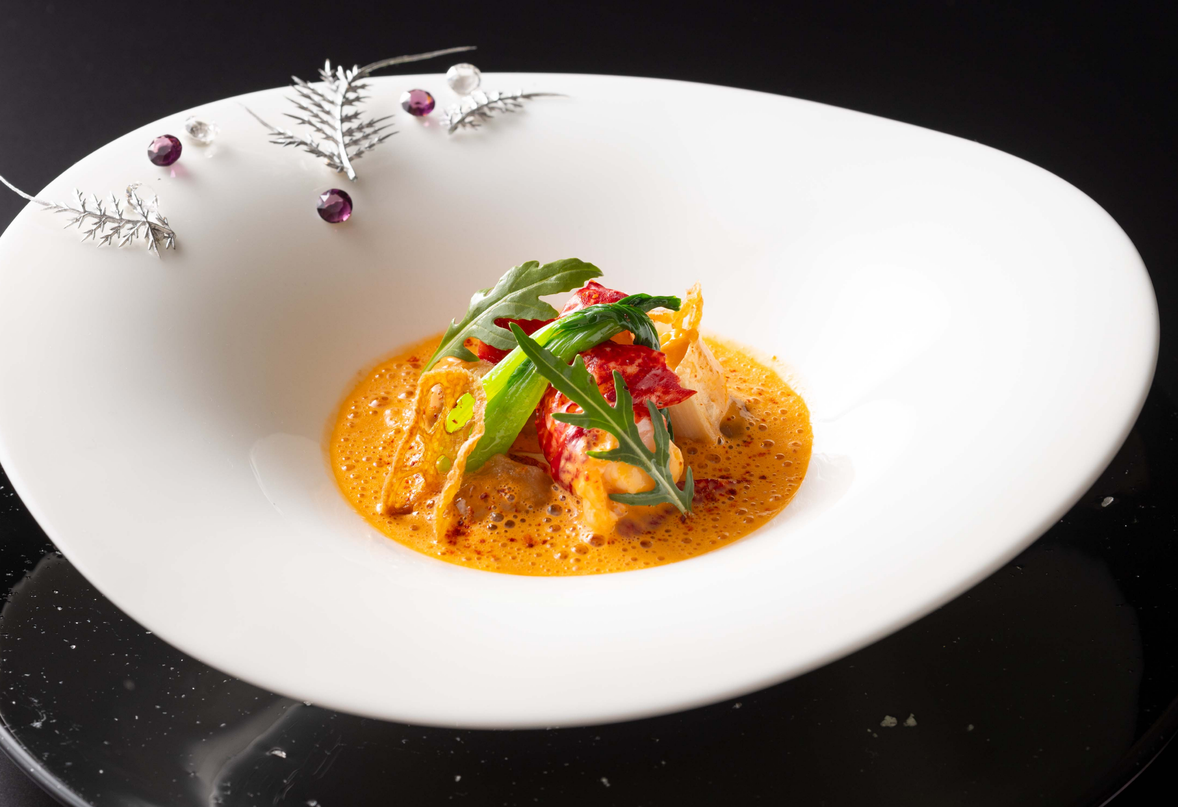 パートブリックで仕上げたパリパリとした食感のタルトにスモークサーモンと相性の良い酸味のあるサワークリームを合わせました。フランス産キャビアをあしらった華やかな一品です。