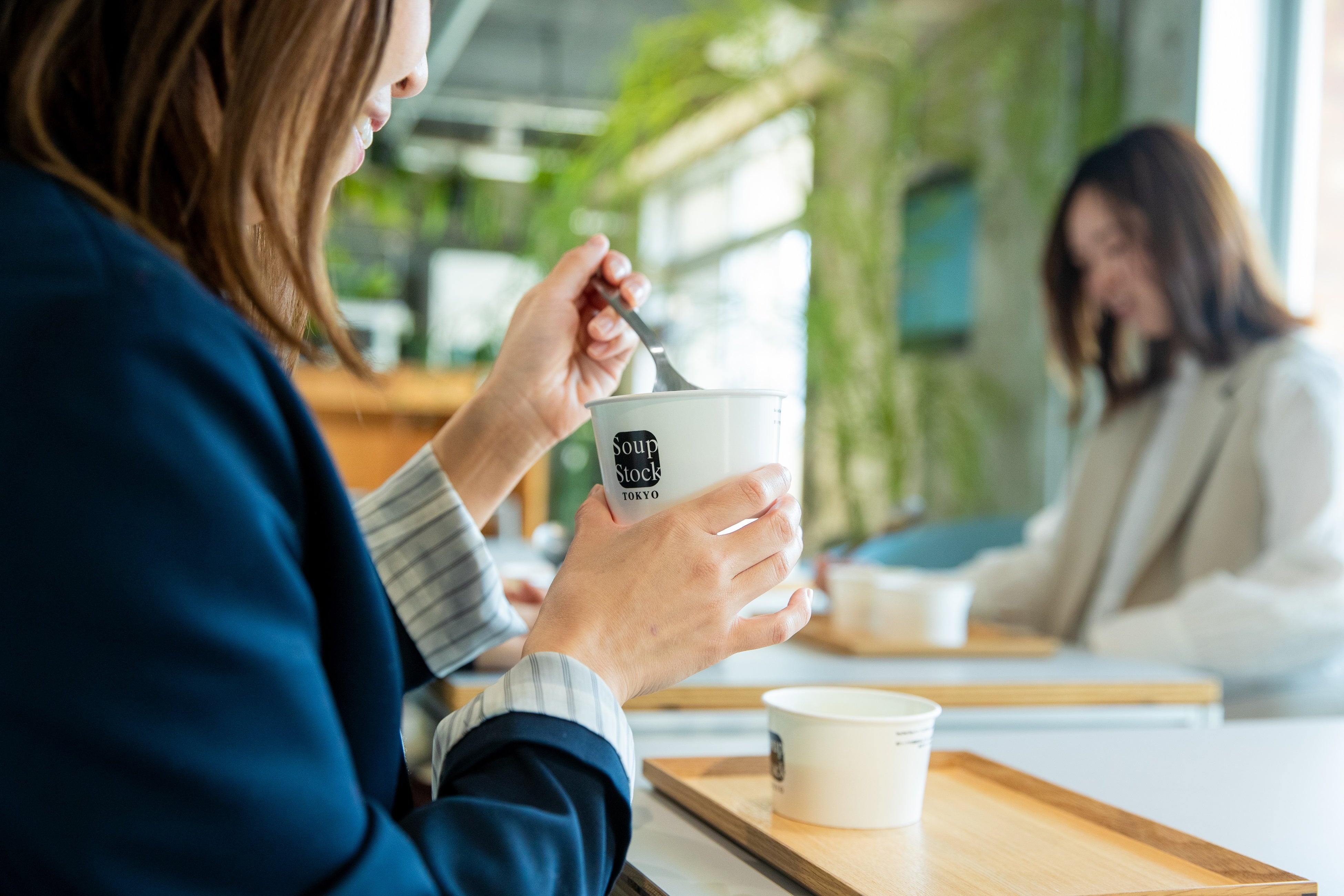 ハイブリッドワークに対応し、時間帯に縛られずに利用でき、多くの社員が喜ぶものであること。さらに、おいしさや社員の健康を考慮した結果、Soup Stock Tokyoの導入を決めました。環境に優しく、フードロスを減らす観点からも適していると思いました。
