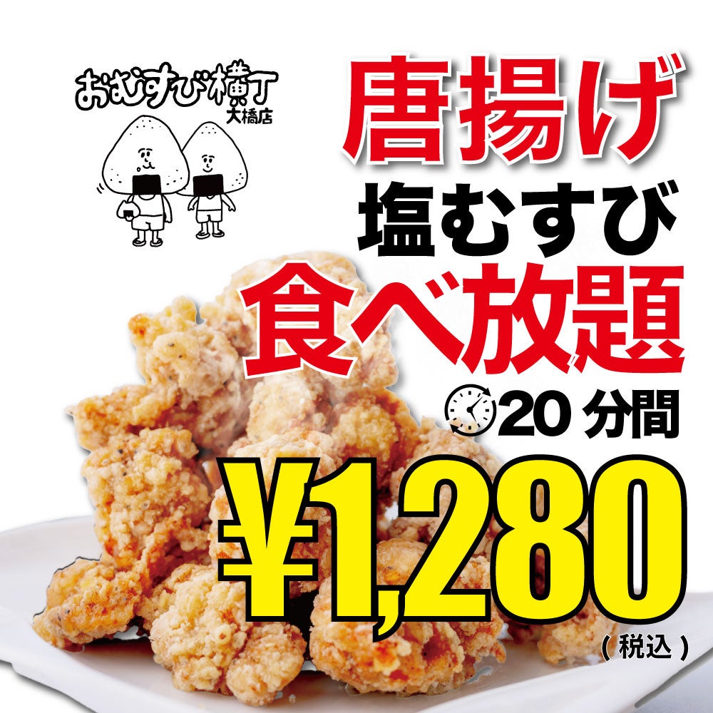 ” 唐揚げ・塩むすび食べ放題 ” ¥1,280(税込)