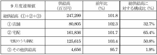 〇9月度の総供給高は、101.8%で前年超えでした。