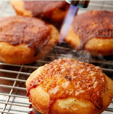表面をバーナーで一気にキャラメリゼすることでほろにがビター新食感を実現。