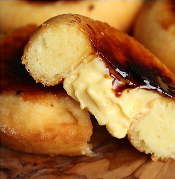 こんなドーナツみたことない!ふわっカリッとろ~りの新感覚スイーツです。豆乳を使用し、ひとつひとつ手作り。バーナーで一気にキャラメリゼし、カリカリッの新食感を実現。ほろ苦ビターがアクセントに。濃厚なカスタードクリームはあっさりとした豆乳ドーナツと相性抜群。せひお試しください★