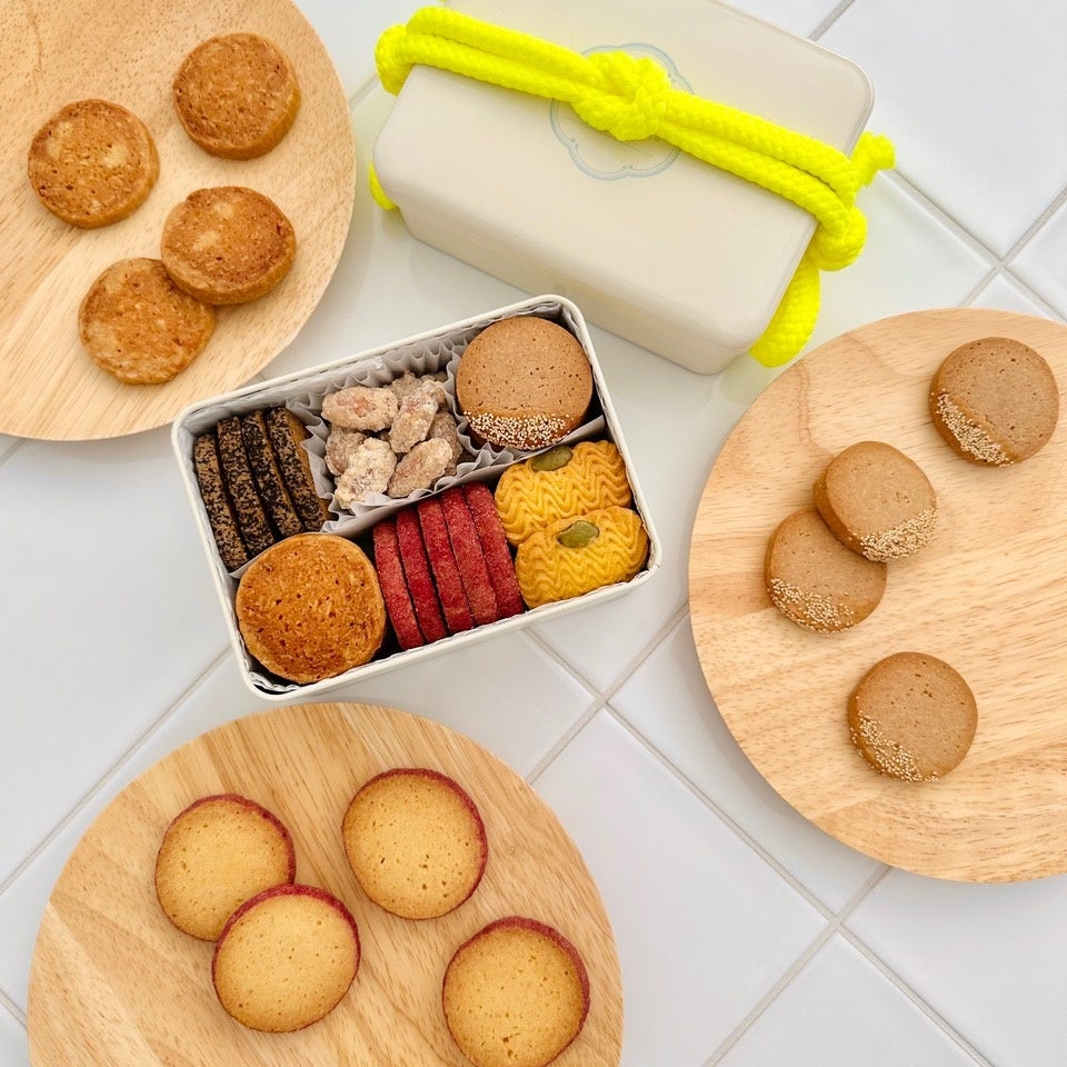 季節限定を含んだ全14種類のクッキーは、単品でも用意されている。(それぞれ各4枚入り)「プレーンバニラ」「胡麻」各240円(税込)、「ほうじ茶」「紅茶」各270円(税込)、「レモン」「プレミアムバター」「アーモンド」「抹茶」「珈琲」各260円(税込)、「さつま芋」300円(税込)、「栗」「メープル」各320円(税込)。