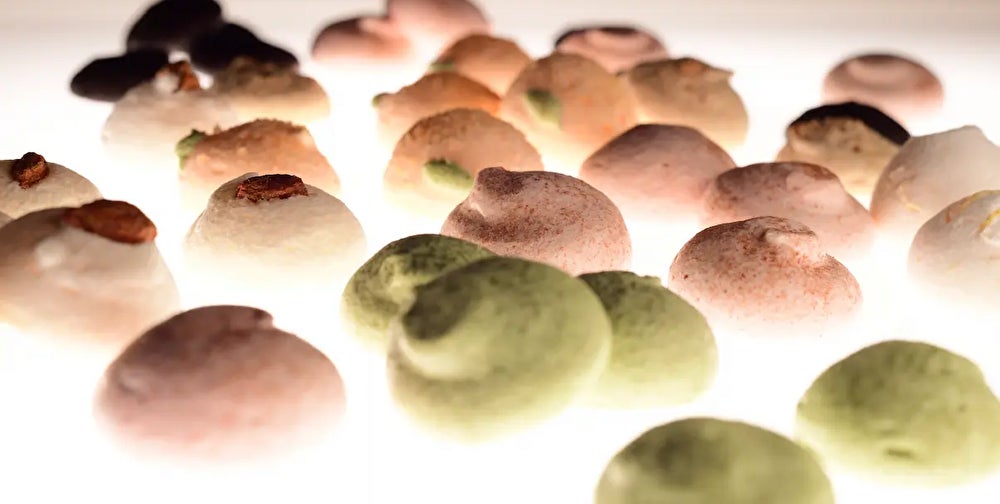 「メレンゲ茶菓(さか)」は、新鮮な果物や酒粕、味噌など、多様な素材から生み出される新感覚のお茶菓子。