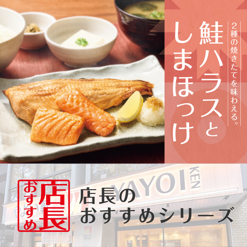 【ミニすき焼き小鉢付】 鮭ハラスとしまほっけの定食 1,390円