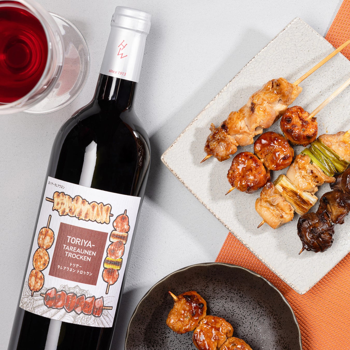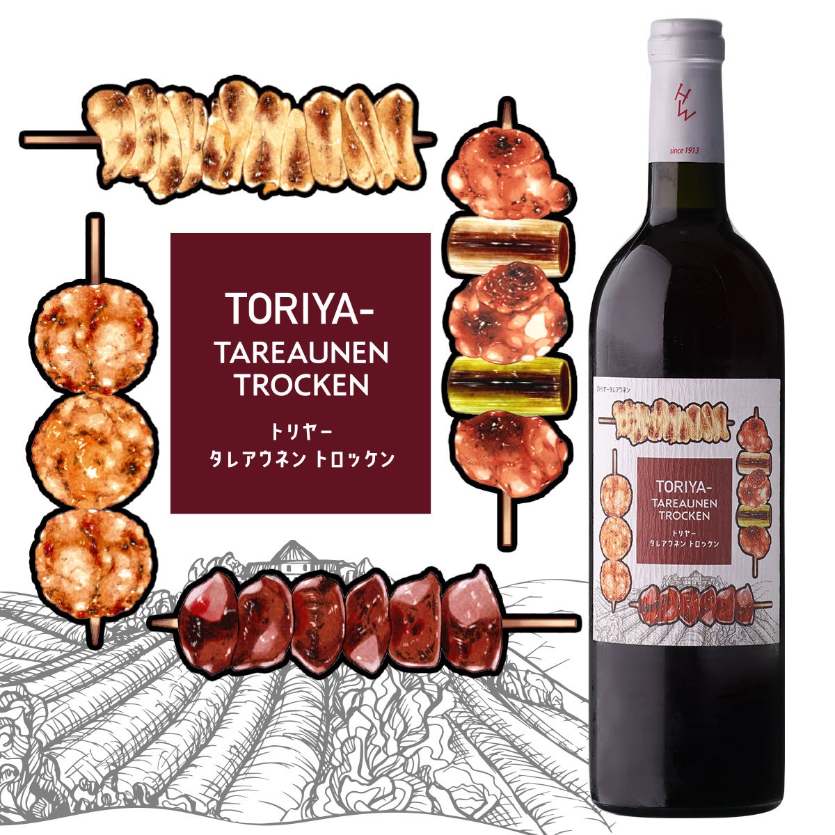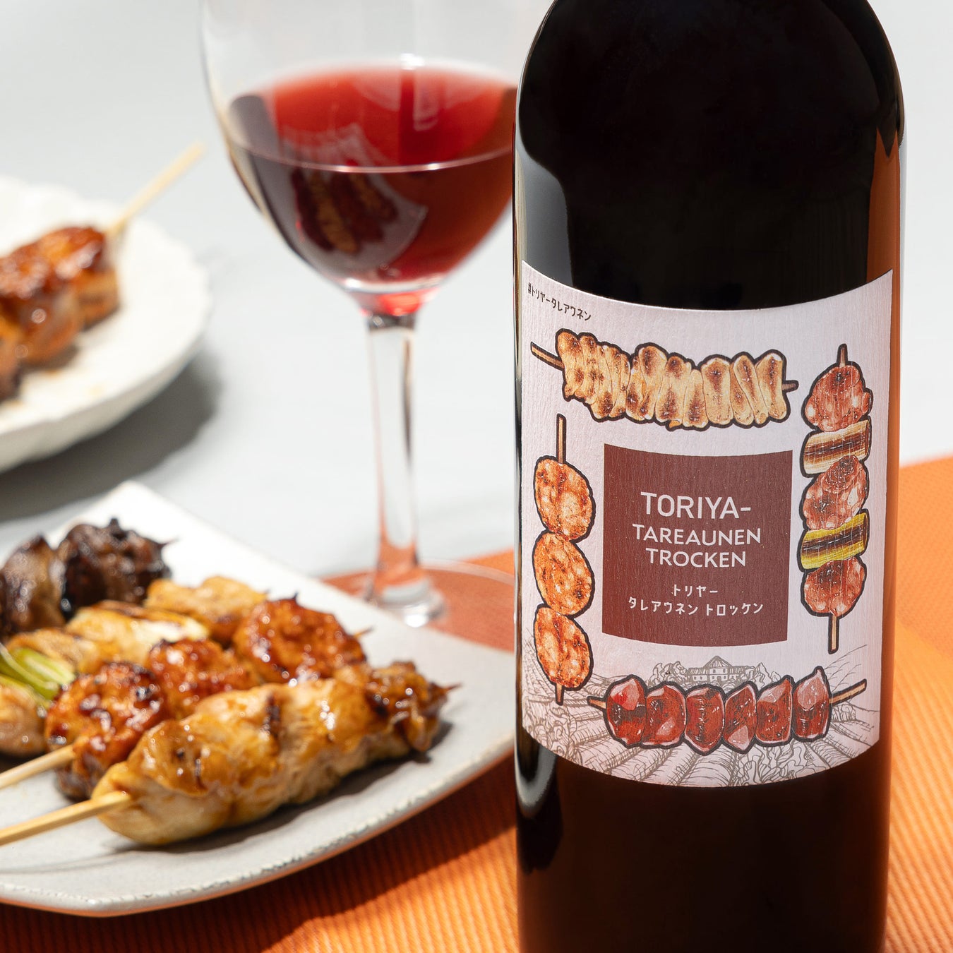 『トリヤー タレ アウネン トロッケン』は、ラズベリーや梅のような甘酸っぱさが特徴の赤ワイン。炭火で焼かれた焼き鳥の香ばしさとタレの甘辛さを引き立て、まさに焼き鳥のために生まれたと言える逸品です。特にレバー串との相性はマリアージュの域に達しています。