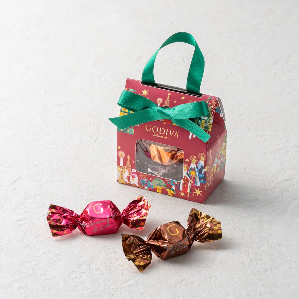 ハッピーな「ウィンターワンダーズ」のモチーフを描いたパッケージに、5種類のG キューブを詰め合わせました。ミルク、ダーク、ホワイトチョコレートプラリネ、ブロンドソルテッドキャラメル、ダーク ルビーストロベリームースといった、5種類のフレーバーを食べ比べできるのも魅力な詰め合わせ。気軽なギフトにもぴったりです。