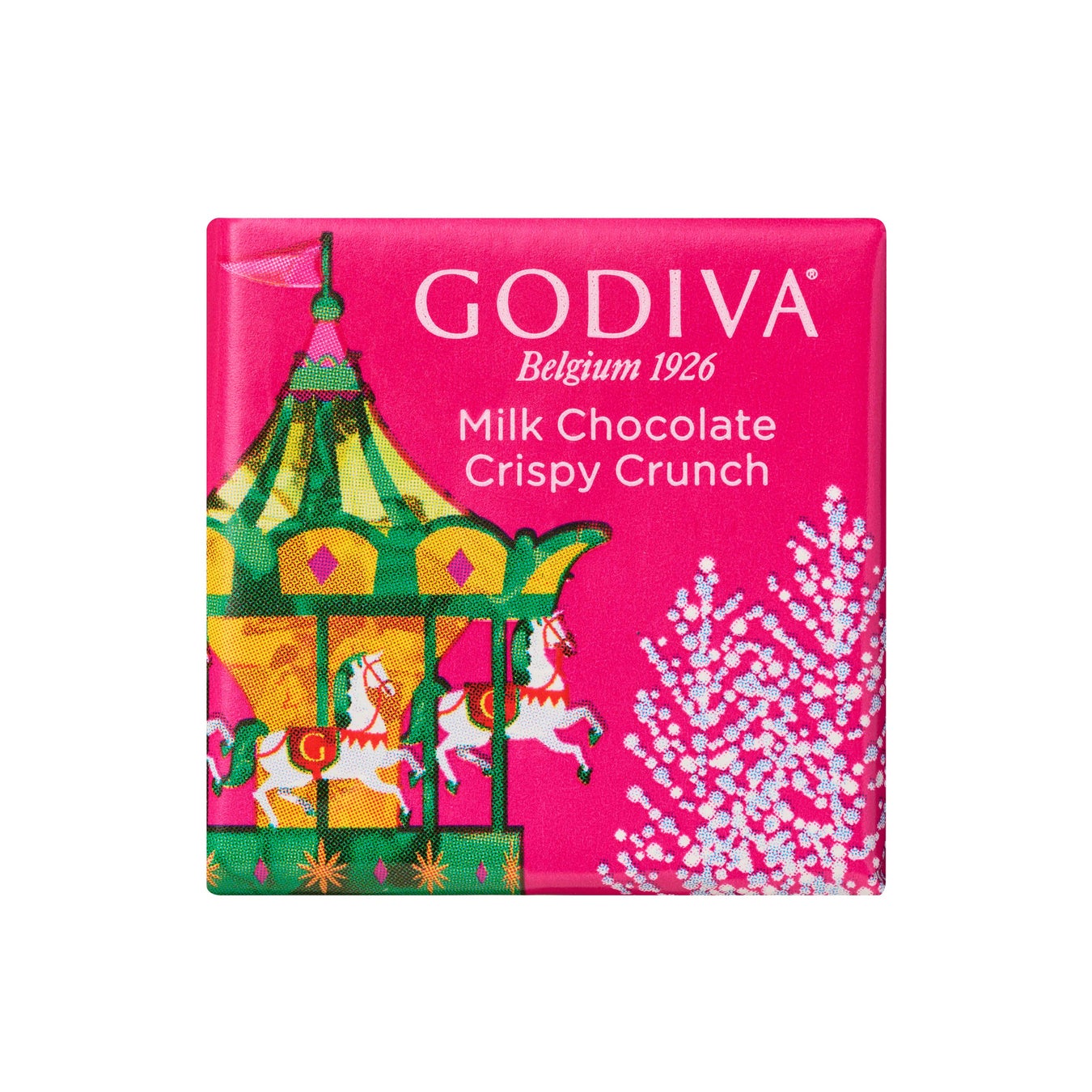 ハッピーな「ウィンターワンダーズ」のモチーフを描いたパッケージに、ホリデー限定デザインのミルク クリスピークランチとダーク ストロベリーのカレを2種類詰め合わせました。