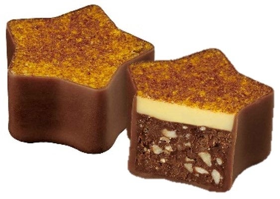はちみつとジンジャーが香る、サクサクとした食感が楽しいくるみのプラリネを、可愛らしい星形のミルクチョコレートのカップで包みました。