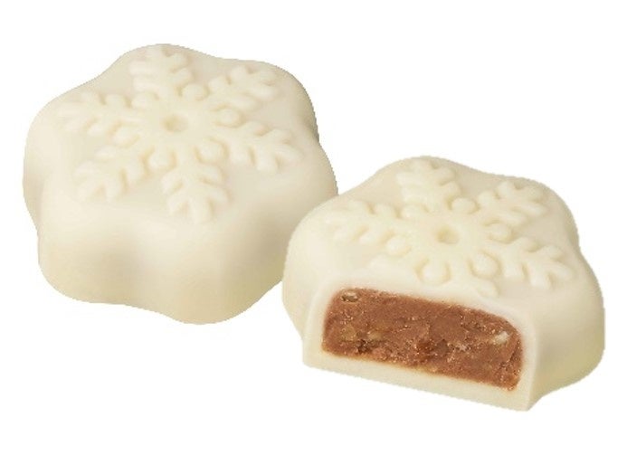 ピエモンテ産ヘーゼルナッツプラリネを雪の結晶をかたどったホワイトチョコレートで包みました。