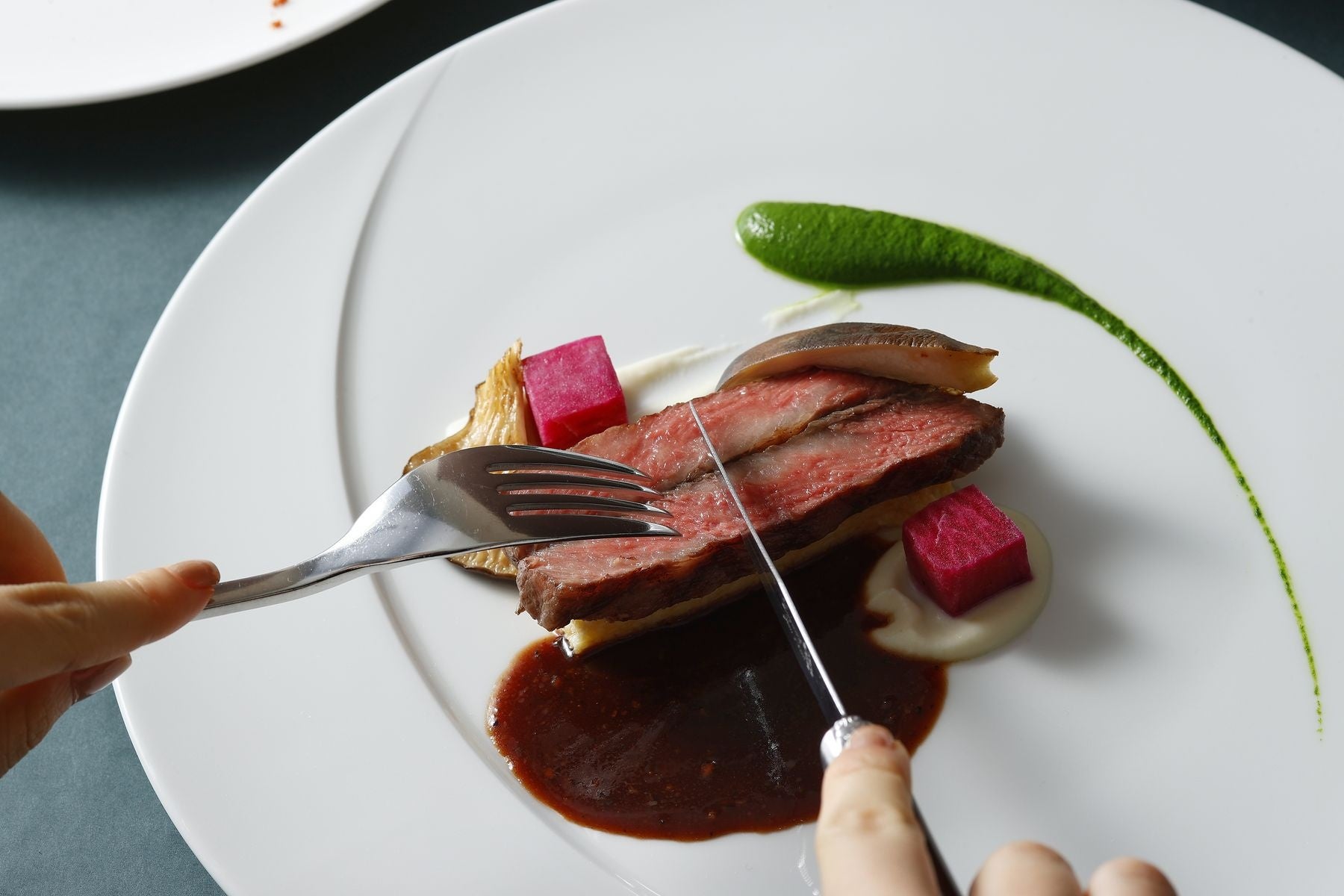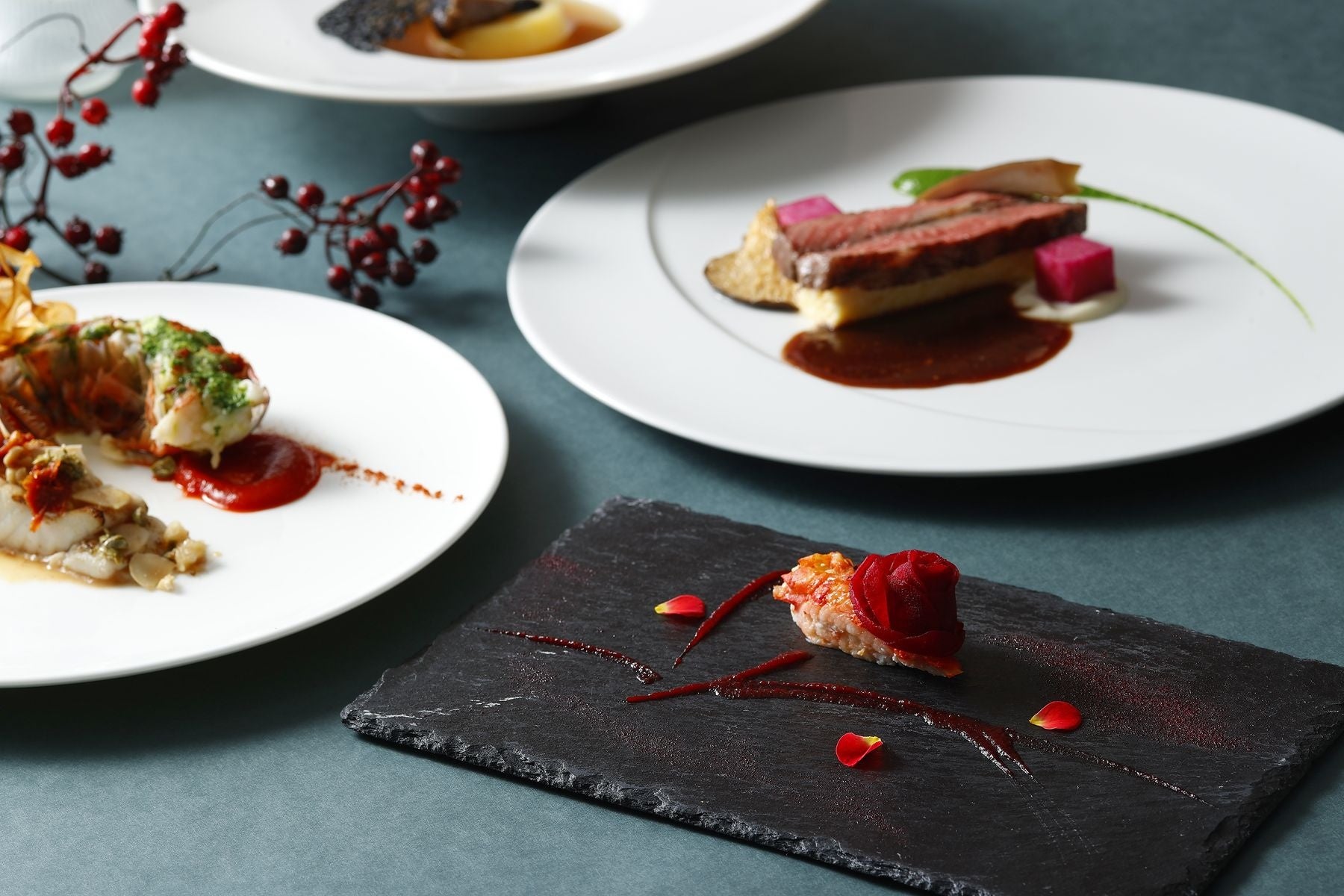 日本各地から豊富な食材や食文化が集まる東京でしか叶えられない美食体験をお届けする、東京マリオットホテルのシグネチャーディナー。特別な夜に相応しい最上級の冬の味覚に発酵調味料を合わせ、発酵の力で引き出した食材の旨味を、自慢のグリル調理でぎゅっと閉じ込めました。前菜は甘みの強いグリルサーモンを使用し、雪さらしでじっくり熟成させた発酵唐辛子と合わせてお召し上がりいただきます。魚料理は平目とオマール海老を一皿に。平目の繊細で淡泊な味わいと、オマール海老の濃厚な風味が調和するよう、和製ナンプラーの「しょっつる」を効かせたバターソースで味のバランスを整えています。メインディッシュはA5等級の松阪牛を丁寧にグリルし、王道のトリュフソースで贅沢な味わいに。“冬の味覚×発酵×グリル”で演出する華やかな品々が大切な人と過ごす特別な夜を彩ります。また、「G’s GRILL DINNER COURSE -WINTER-」では赤身の風味が強い「土佐あかうし」のグリルをメインディッシュとしてお楽しみいただけます。