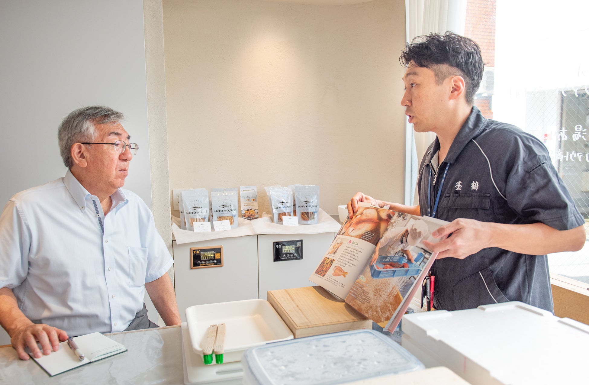 朝の魚市場で自分だけの魚を買付けるところから体験はスタートします。