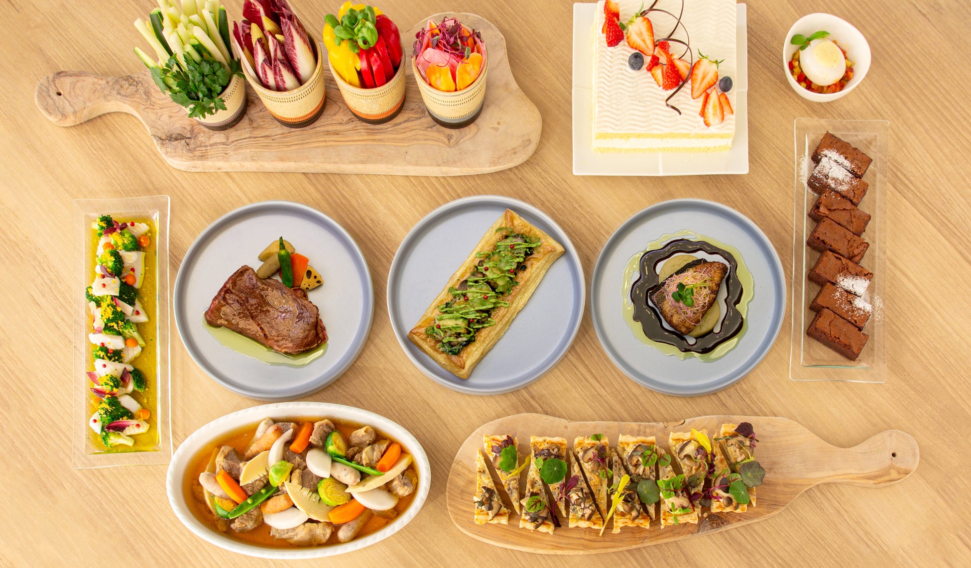 ビーフシチューと冬野菜 / スパニッシュオムレツ / オニオンコンソメスープ / ミニ肉まん / オリエンタル特製ハイカレー / パルミジャーノパスタ / オイルサーディンと北あかりのポテトディップ / モルタデラハムと香味野菜 / プロシュートと長ネギのマリネ / スモークサーモンと大根 / 白菜とベーコンとエッグサラダ / ミックススプラウト / カリフラワーピカリリ / モッツァレラチーズとオリーヴ / 赤キャベツのマリネ / ロメインレタスシーザーサラダ / スイーツ各種 など約30種類