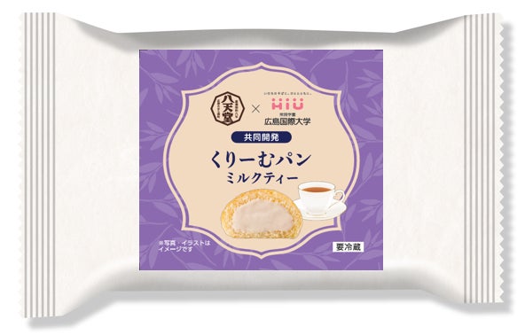 完成したパン『八天堂×広島国際大学 くりーむパン ミルクティー』を広島国際大学 呉キャンパスで2024年10月26日(土)・27日(日)に開催される大学祭、ならびに広島県内「八天堂本店、みはら神明の里店」で同日10月26日(土)から数量限定販売いたします。
