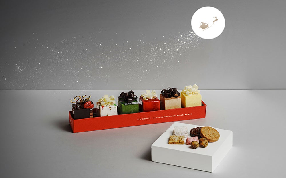 サイズのお菓子のこと。一般的にフレンチでコース料理の締めくくりとして食後の飲み物とともに提供される小菓子のことを指しますが、UN GRAINでは食後に限らず、家族や友人など大切な人たちと過ごすひとときにおもてなしの心を表してくれる、小さくシックなお菓子を総称して呼んでいます。