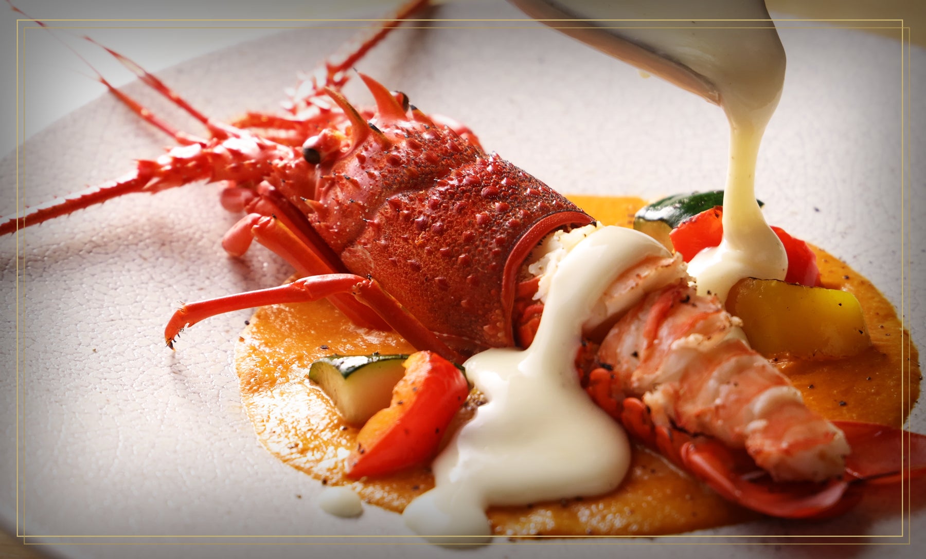 香ばしくグリルした伊勢海老に、リッチなトマトソースと豊潤なチーズソースをたっぷりと絡めた一品。贅沢な味わいが口の中で広がる極上のひとときをお楽しみください。