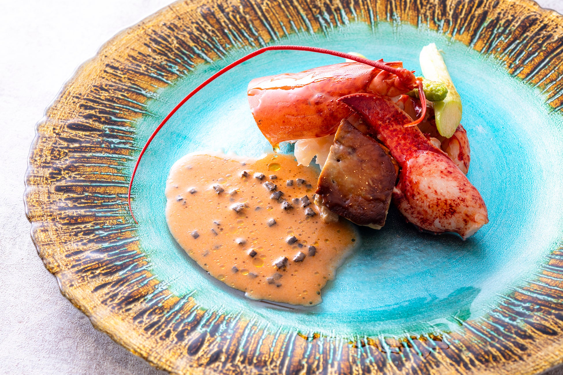 ・活オマール海老とフォワグラのマリアージュ トリュフ風味のアメリカンソース