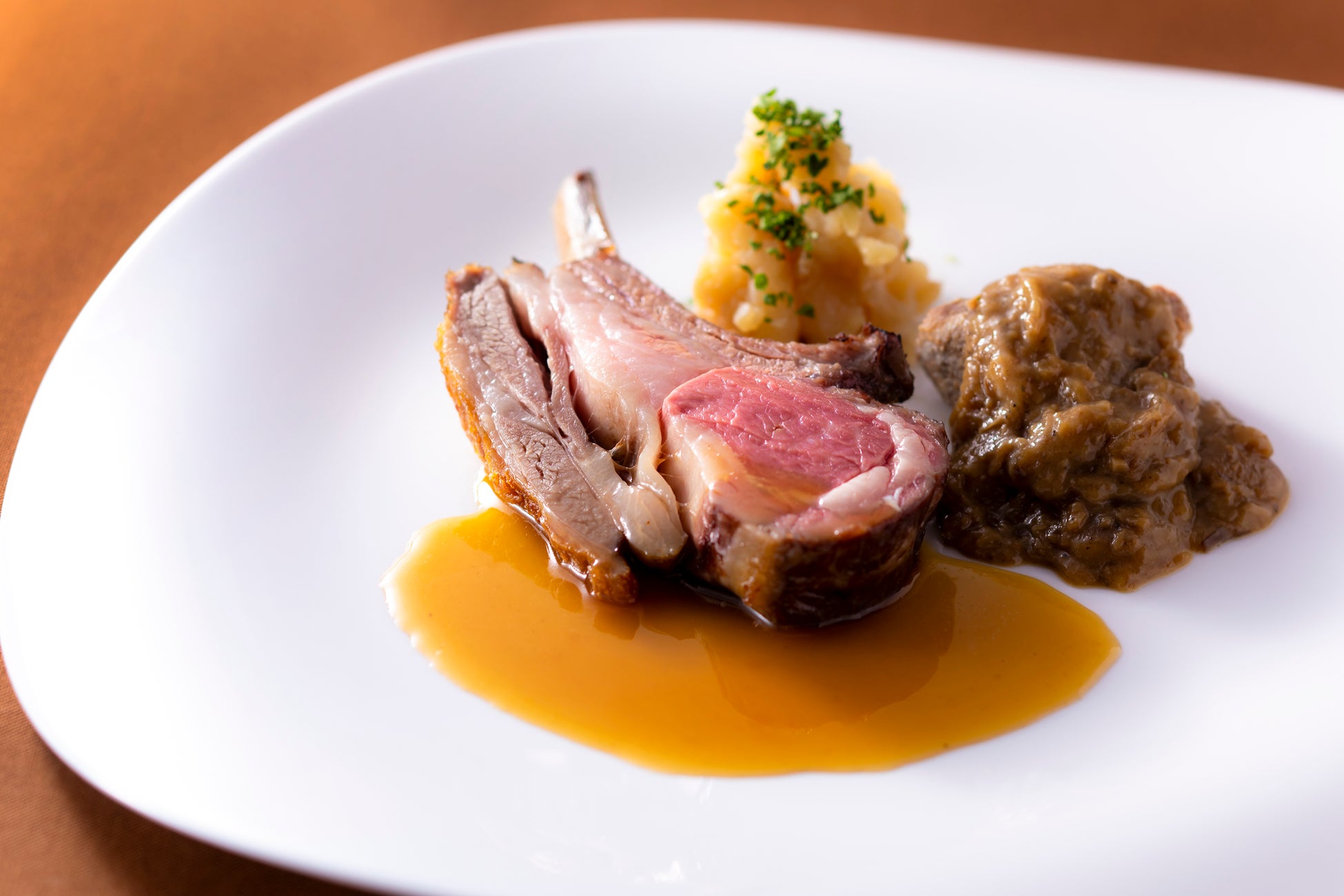 ・ロアリングフォーティーズラムを二種類の調理法でシンプルなローストに 原了郭 御香煎 薫るジュを添えて 湯葉麹とともに軟らかく煮上げ 京丹後久美浜よりハマグリのソース
