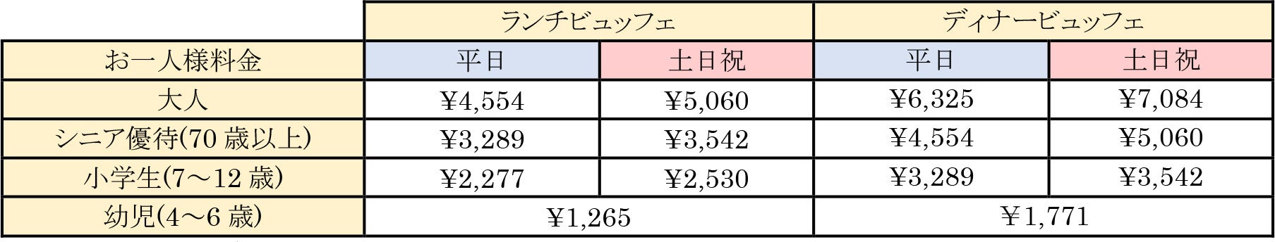 ※表記料金は全て税金・サービス料を含みます。
