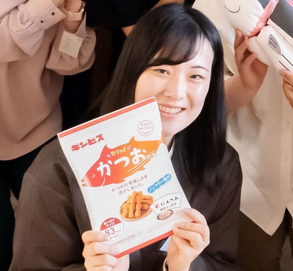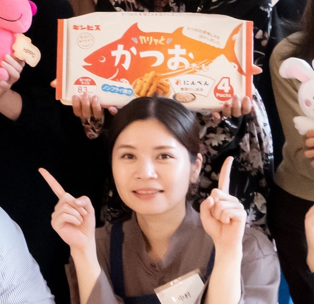ギンビスでも出汁味のお菓子を発売することは初めてでしたが、にんべんさんの力をお借りしてとても美味しいお菓子を開発することが出来ました。実際に消費者の皆様にお会いする機会がなかなかありませんでしたので、こういった企画に声をかけていただき一緒に作ることが出来とても楽しかったです!また皆さまと一緒に商品開発の体験をすることで新しい味の想像をすることが出来、私自身勉強になりました。ギンビスのお菓子をお土産でお渡ししましたが、まだまだ知られていない商品も多くありましたのでこれからも多くの人に商品を伝えられるよう頑張ろうと思います!にんべんさんとは今後も一緒に新しい商品作りをしていき多くの人に商品を届けていけたらいいなと思っております。