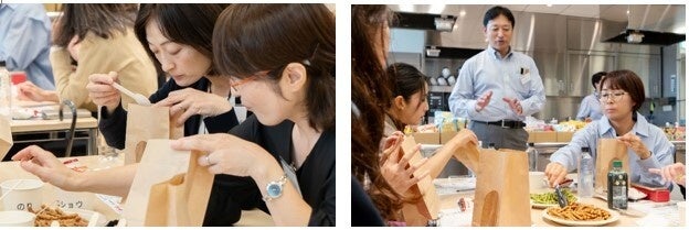 にんべんだしアンバサダーの中からギンビス・にんべん好きの計20名が参加し、両社員によるコラボレーション商品開発の経緯や発売までの商品のあゆみに関するご紹介、カリッとかつおだしの試食、そして実際に商品開発の一端を体験いただく「オリジナルカリッと○○をつくってみよう!」を行いました。