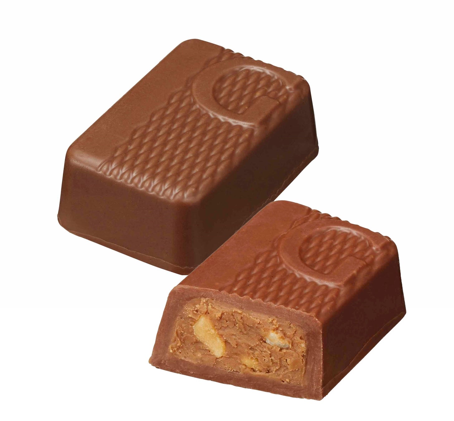マカダミアナッツとショートブレッドビスケットの食感が魅力的なヘーゼルナッツプラリネを、ミルクチョコレートで包みました。