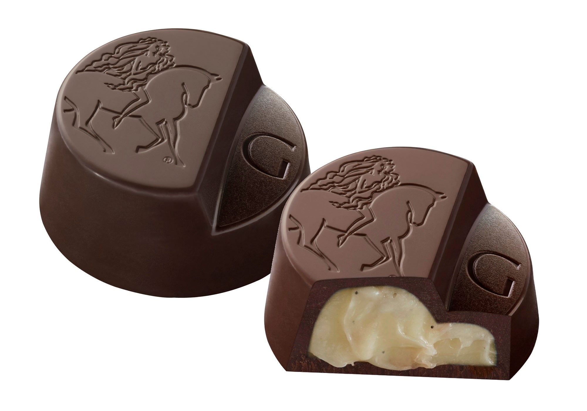 2001年、プリンセス エリザベス誕生のお祝いとして作られたひと粒。なめらかなキャラメルとホワイトチョコレートガナッシュの2層のフィリングを、ダーク&ホワイトチョコレートで包み、ブラウンシュガーで飾りました。