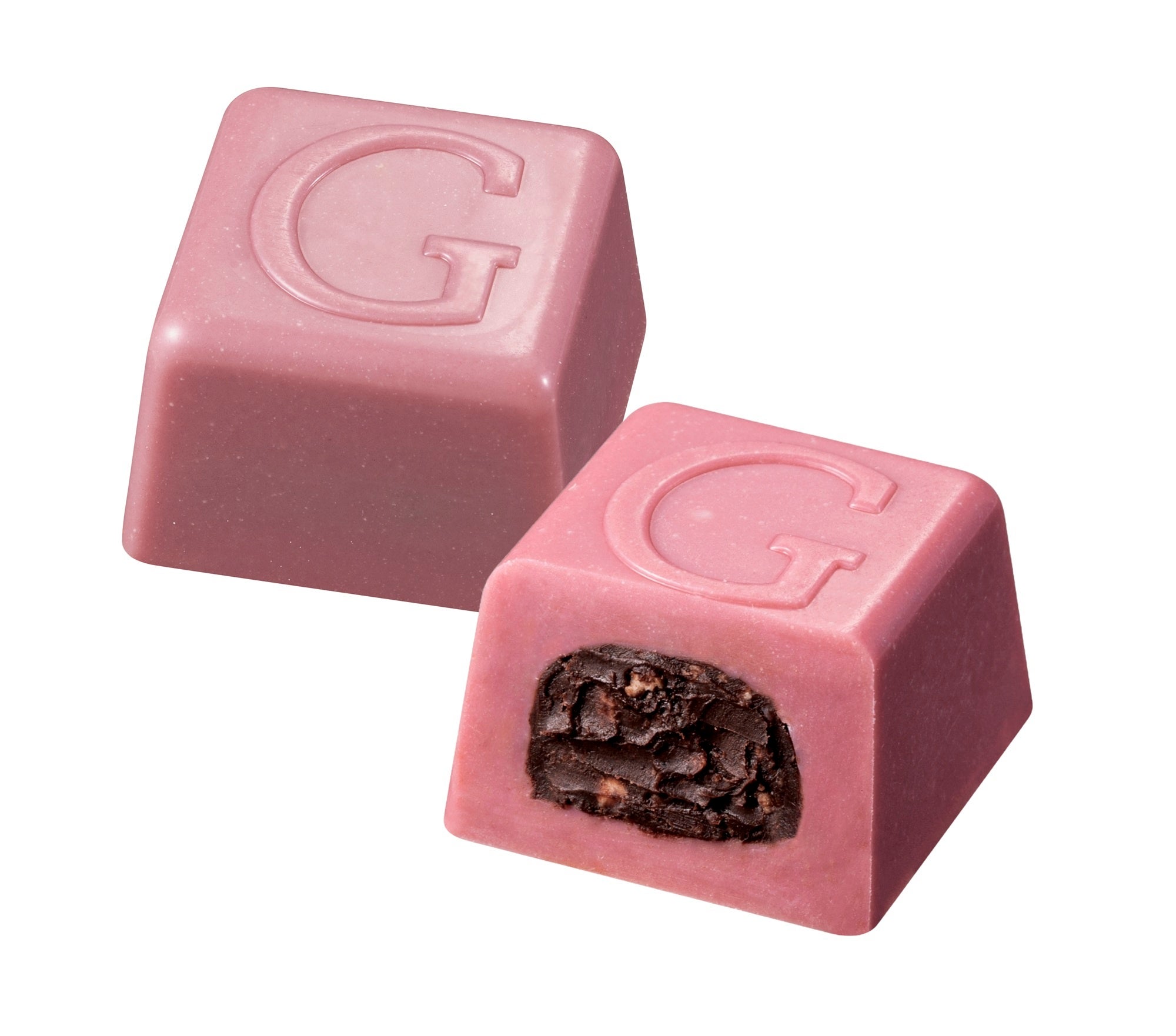 ビスケットクランブルが入ったダークチョコレートムースをルビーチョコレートで包みました。ほろ苦いダークチョコレートムースと甘酸っぱいフルーティーなルビーチョコレートでカカオの多様性を表現したひと粒です。