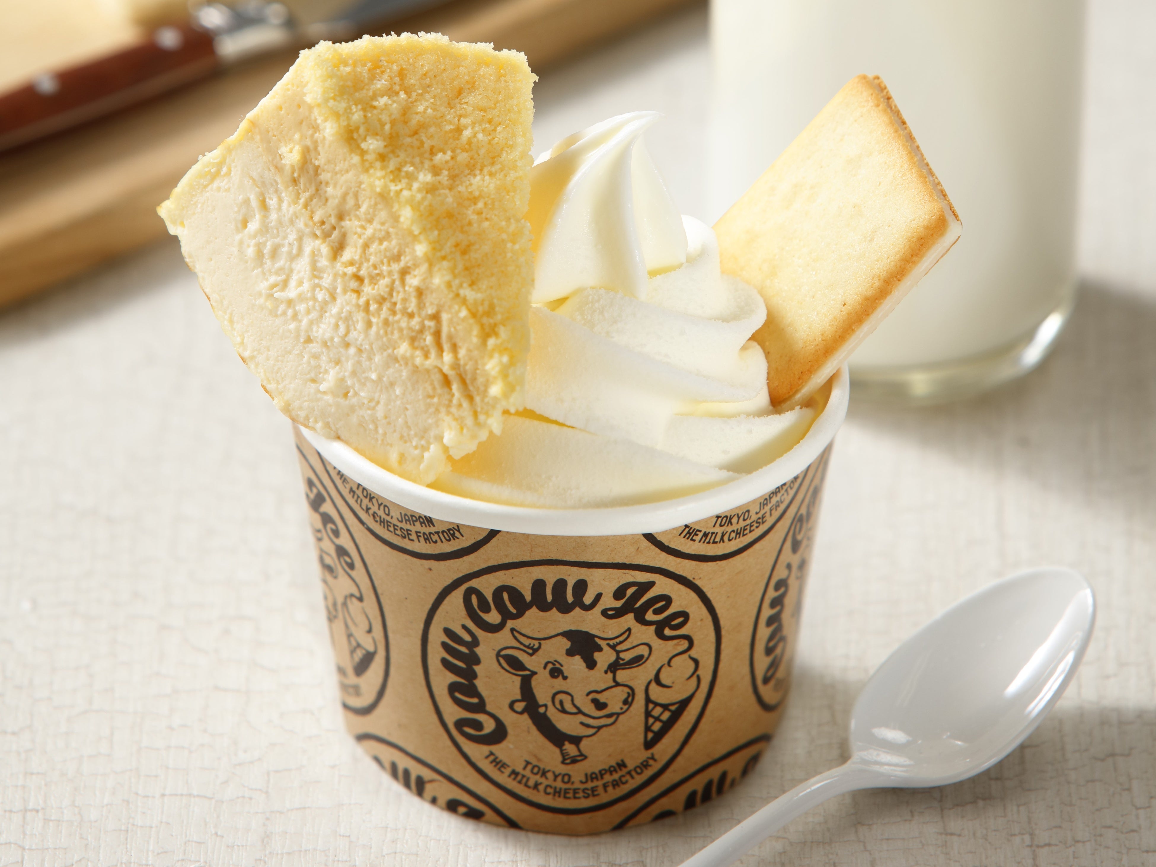 クリーミーでコクのあるミルク味と、2種のクリームチーズと北海道産ゴーダチーズを使った濃厚なチーズ味。その両方を贅沢に楽しめるミックスをご用意しました。アイスの上にクッキーとミルクチーズケーキを贅沢にトッピングしたプレミアムなサンデーです。