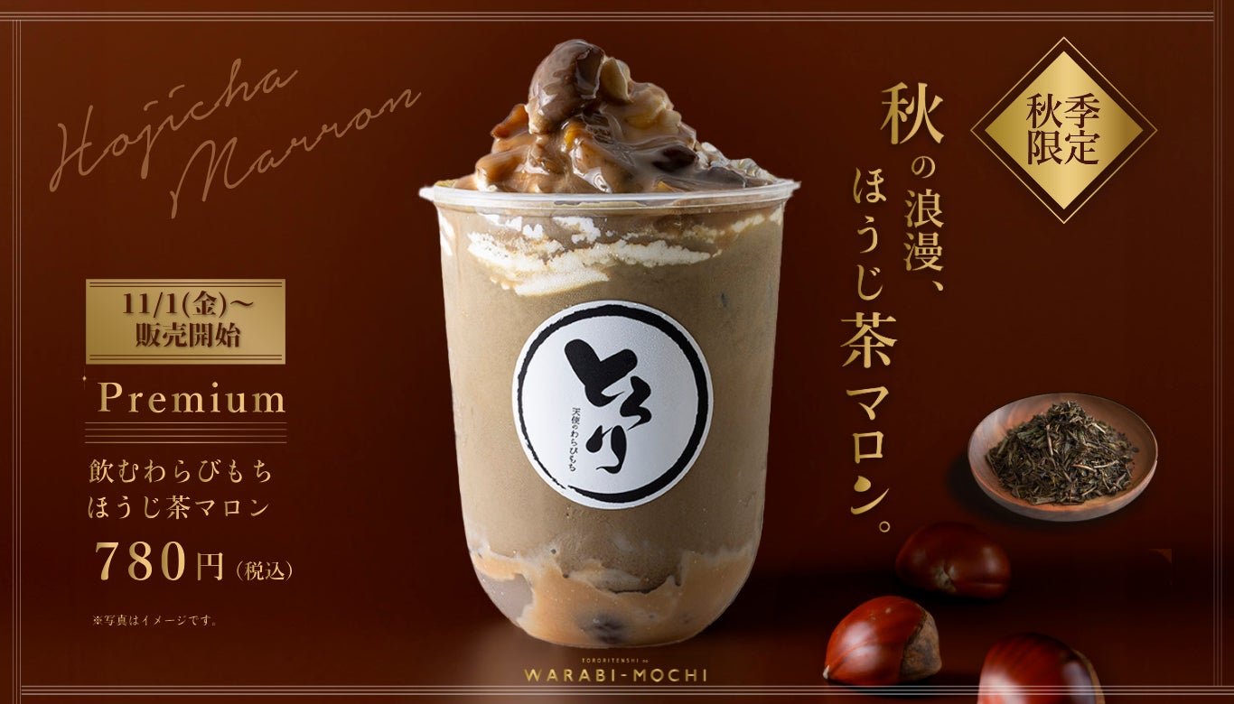 この秋だけの贅沢な「飲むわらびもちプレミアムほうじ茶マロン」をぜひお楽しみください。