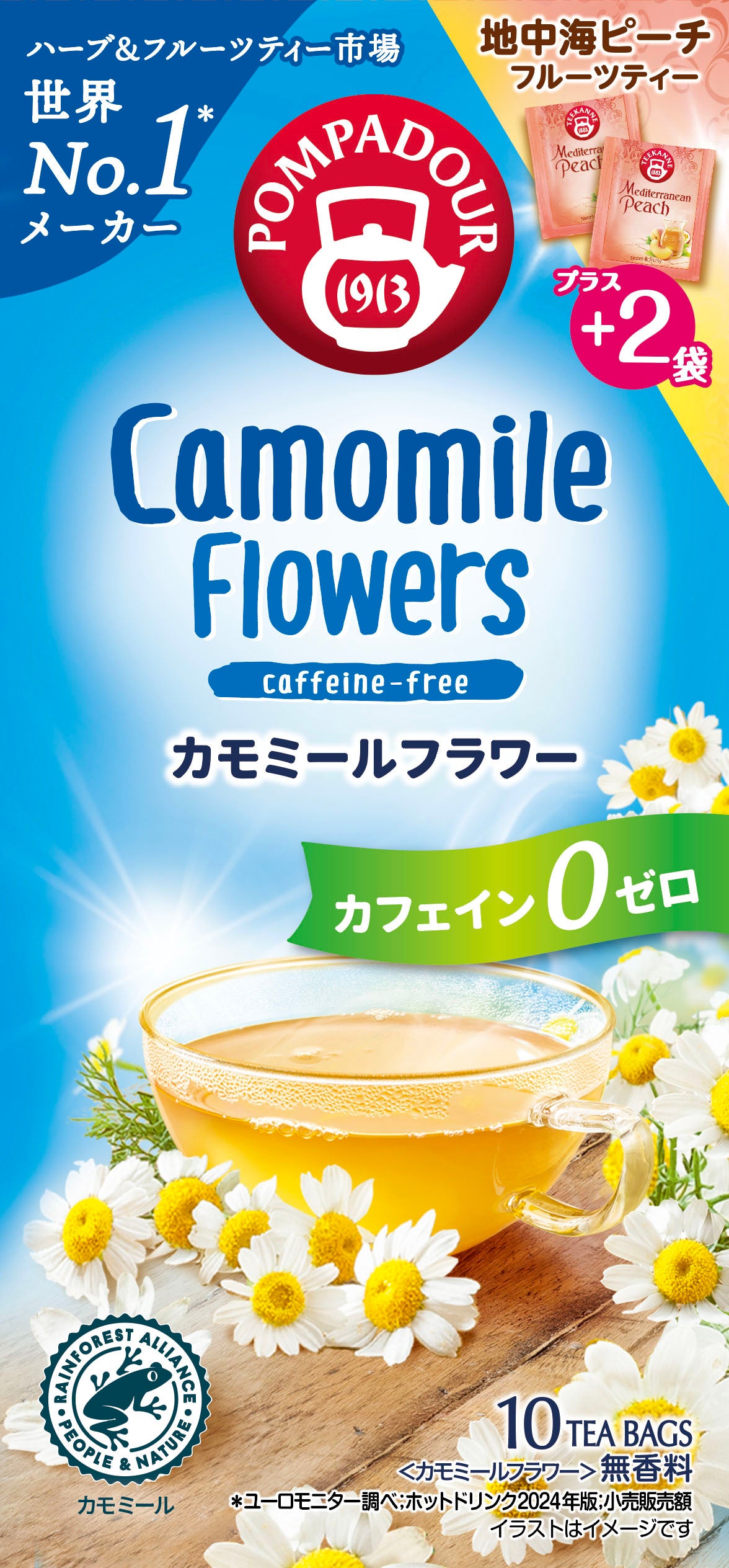 カフェインには睡眠を妨げる作用や利尿作用があるとされています。そんなカフェインを摂取する量や時間を管理して、うまくカフェインと付き合っていくことを「カフェイン・マネジメント」と言います。『カモミールフラワー』『ローズヒップ&ハイビスカス』『ペパーミント』『地中海ピーチ』はカフェイン0のため、妊婦さんやお子様、カフェイン摂取を気にしている方など幅広い方にお飲みいただけるところが特長です。