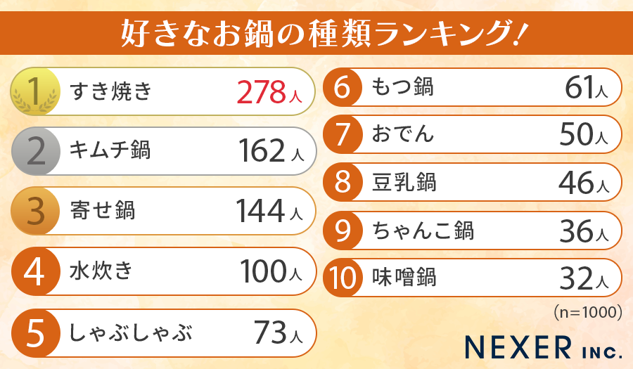 株式会社NEXER・一番好きな鍋に関する調査