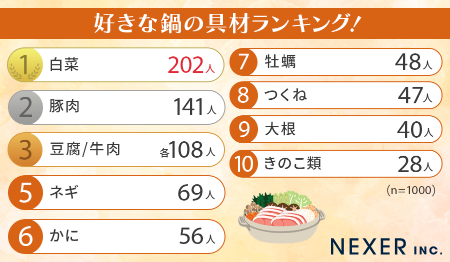 まずは、好きな鍋の具材ランキングを発表します。
