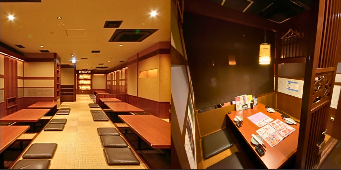 周りを気にせずゆっくりお食事を楽しめる個室・半個室席を完備しており、2名様〜からの少人数や30名様〜の飲み会や接待などにお使いいただけます。さらに本町店では、最大80名様までご利用頂ける座敷掘りごたつ席もございます。大規模の宴会や歓送迎会、様々なシーンにご利用ください。