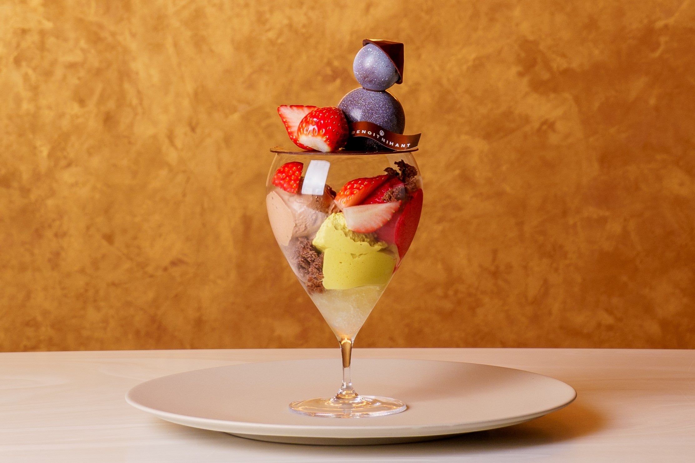 冬季限定「フレーズ ショコラパフェ」をカフェスペースにて12月1日より販売開始。ブノワ・ニアンのペルー産カカオを使用したチョコレートアイスや苺、ピスタチオムース、フランボワーズソルベ、サパンジュレとの組み合わせを味わえる冬季限定パフェ。ドリンク(紅茶もしくはコーヒー)一杯付き。