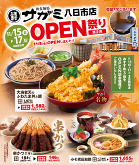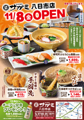 麺・天ぷら・寿司・茶わん蒸し・小鉢をセットにした「サガミのこだわり」を満喫できる商品です。
