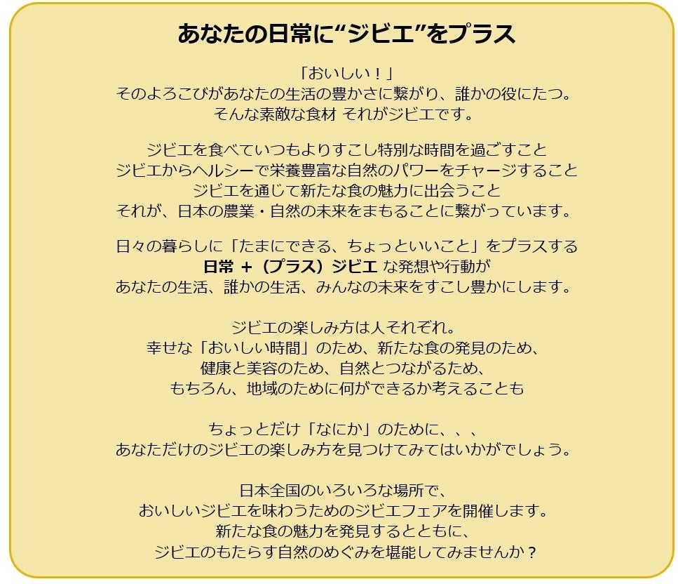 ジビエを食べることが自分自身のため、もしくは自分以外の誰かのために「ちょっとだけ役に立つ」ことを表現した「ジビ活」を本フェアの中でも紹介します。