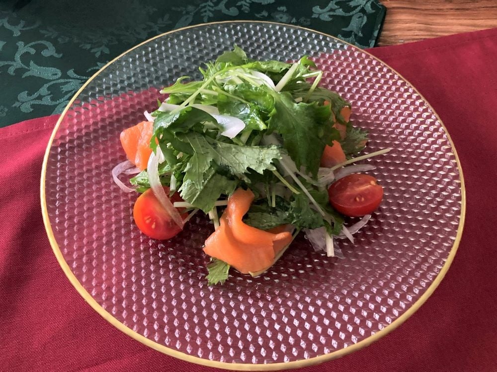 ○スモークサーモンと葉野菜のサラダ~クレイジ―ソルトドレッシングで~