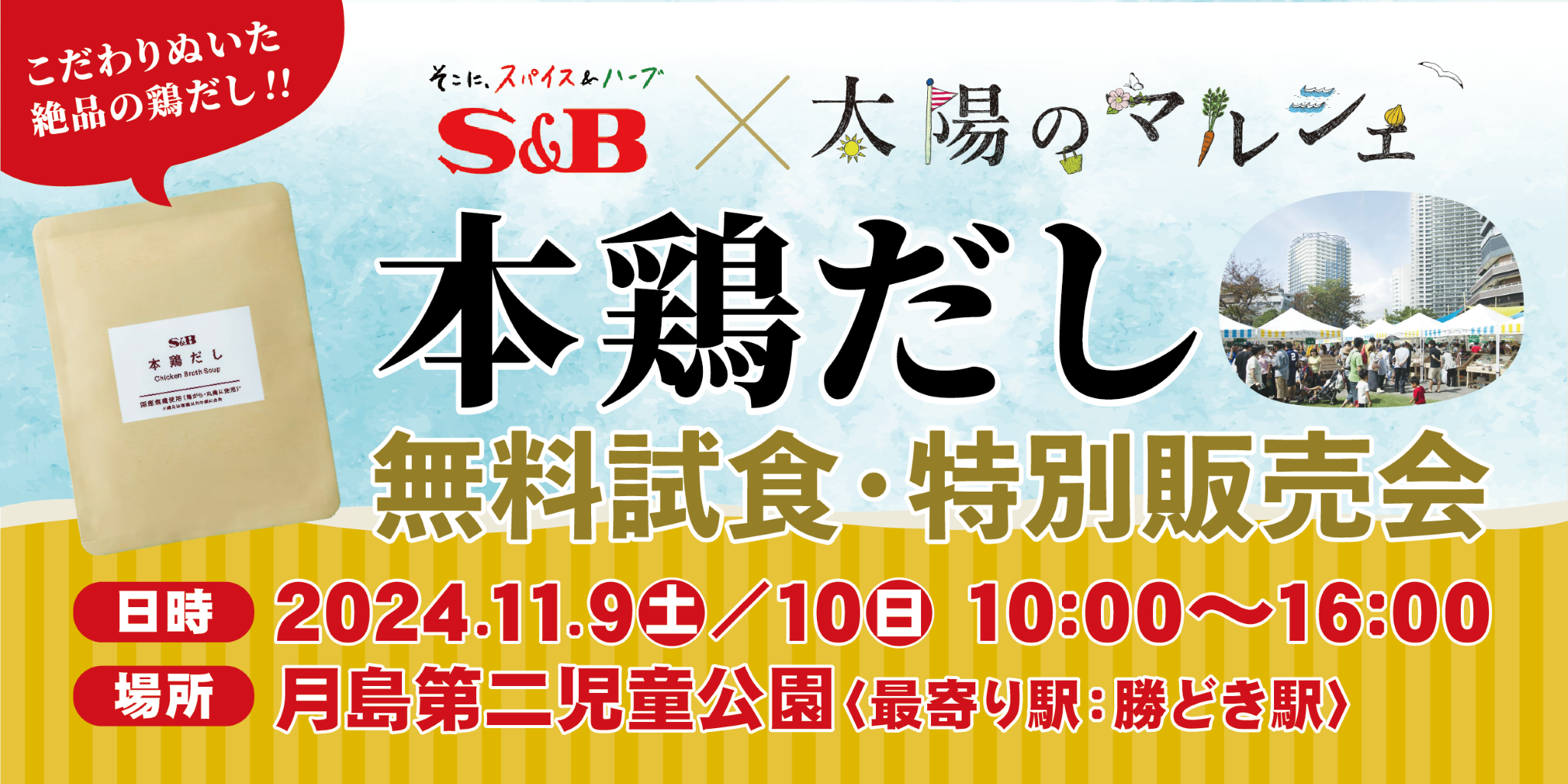 食に関心のある方が集まるマルシェでの試食や特別販売会を通じて、 「本鶏だし」のおいしさや手軽さをお客さまにダイレクトにお伝えします。 |