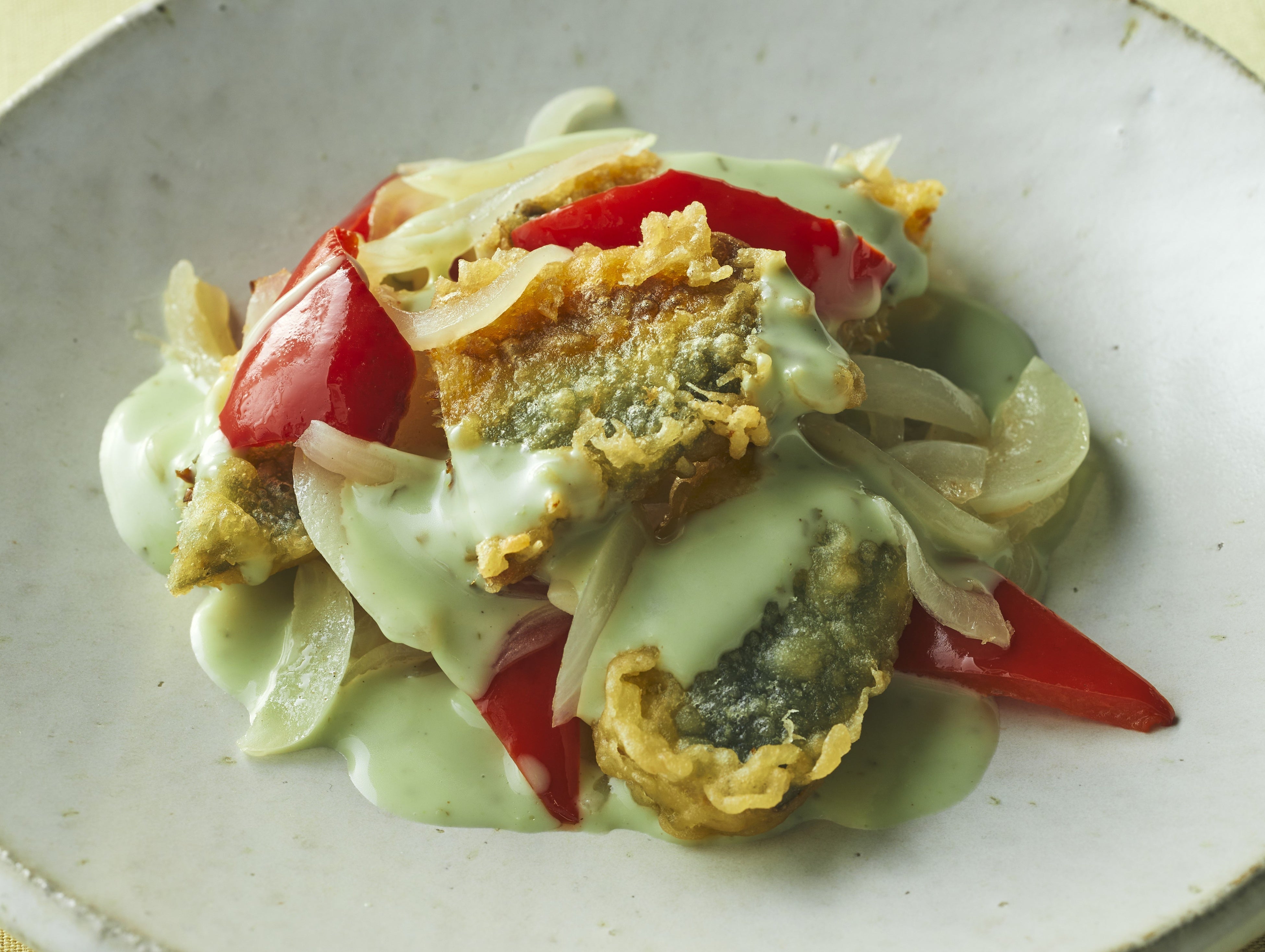 バジルが効いた濃厚チーズソースがいわしの旨みを引き立てます。